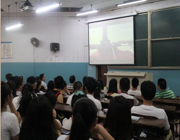 beat365官网师生集中观看纪念“抗日战争暨世界反法西斯战争胜利70周年”阅兵式