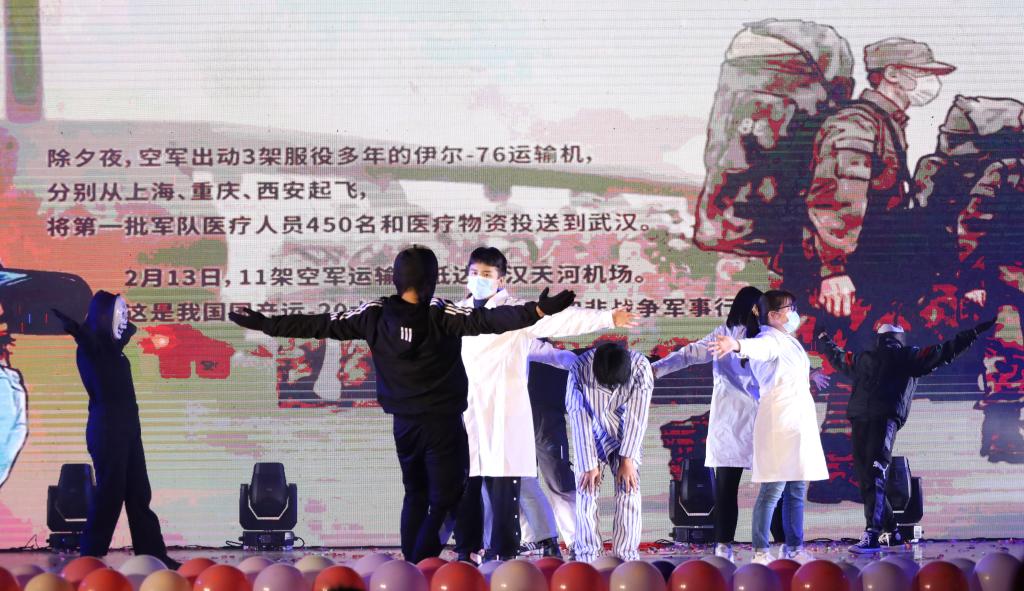 细数过往,化院的老师同学心连心,创造了很多优秀的成绩;再看今朝,我们再次肩并肩,迎接新的未来创造新的辉煌。在这不平凡的年月里,哪有什么岁月静好,只是有人替我们负重前行,情景剧《致敬递行者》致敬了在疫情前线顽强抗疫的每一位工作人员。灵动的舞姿,帅气的动作,《招牌动作》很好的诠释了化工学子的青春活力,让晚会现场再次燃炸了起来。保持愉悦的心情,充满对快乐的向往,化院思想政治辅导员罗云老师带领同学们献上了一曲《向快乐出发》,欢乐的氛围感染着每一位观众,鼓励着我们积极过好每一天,向快乐出发。