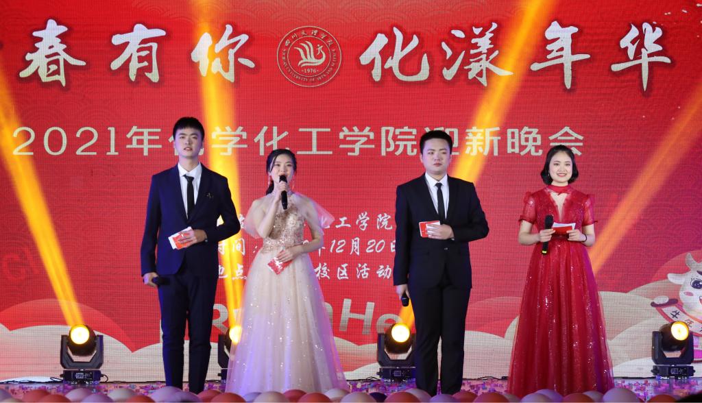 2020年12月20日晚19:00,beat365官方网站“青春有你,化漾年华”2021迎新晚会在南坝校区活动中心隆重举办。学校副校长李壮成、教务处处长程碧英、beat365官方网站党总支书记朱朝菊、院长刘长路、部分职能部门领导老师、化工学院全体老师、学生四百余人于现场观看,同时学校上千人通过直播的方式在新媒体平台观赏。晚会共分为三个篇章,以不同的主题彰显了化院的不同风采。晚会在一场活力四射的开场舞中拉开了帷幕,串烧的音乐和跳动的节奏,展现着别样的青春与活力。在彩色霓虹灯的映衬下舞者们的热情瞬间引爆了全程,为晚会营造了热烈的氛围。