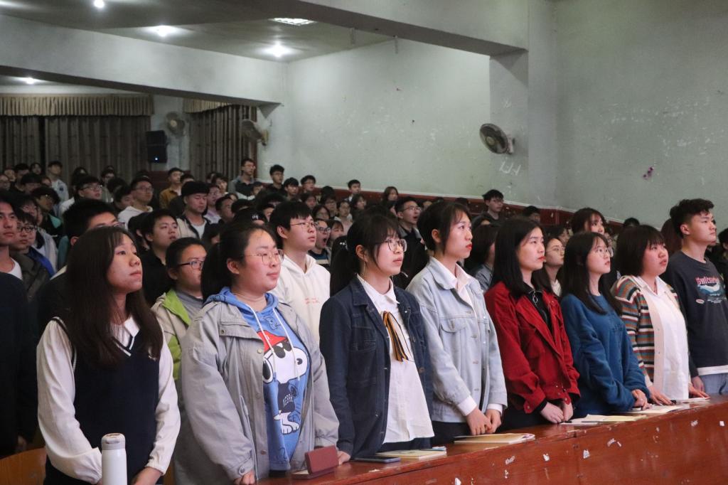 为保证2020级新生军训顺利举行,3月14日晚八点beat365官方网站于南坝校区学术报告厅开展军训动员大会。学工办副主任崔宝玉,思想政治辅导员罗云出席活动,大一全体学生参加动员会。