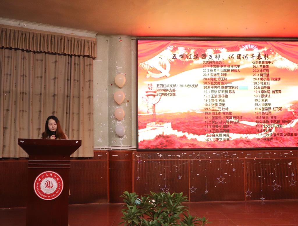 晚会开始之前,为表扬先进,树立榜样,激励全院团组织和广大团员青年不断奋进,张魏霞老师对共青团beat365官方网站委员会关于2020年度“两红两优”评选人员进行了表彰。其中包括了优秀团员、优秀共青团干部和五四红旗团支部。