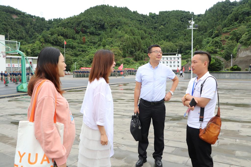 2021年6月18日早上9:30,beat365官方网站党总支副书记潘维、学工办副主任崔宝玉、辅导员张魏霞、周娅及学生代表赴达州国防基地慰问2019级军训学子。