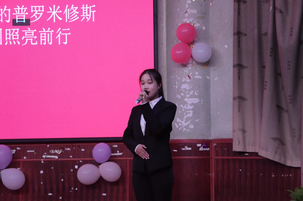 伊始,主持人逐一介绍评委,潘书记简单致辞宣告比赛正式揭开帷幕。选手们轮番上阵,或慷慨激昂,话奋斗过程;或铿锵有力,展书生意气。他们有的以红色事迹为点,有的以成长轨迹为线,有的以生活环境为面,讲述了作为大学生的自己对于如何以青春之心向党的思考。选手们用严谨的演讲逻辑、饱满的精神状态、巧妙的互动技巧折服了在场观众。中场节目合唱“最初的梦想”更是精彩纷呈,美妙的歌声令人流连忘返,收获了同学们的一致好评。随后有奖问答环节将比赛的氛围推向了最高潮,同学们踊跃抢答,以自己丰富的知识获得了学院精心准备的礼品。选手演讲结束,在大家的阵阵掌声与欢呼中,潘书记点评到:本次比赛主题突出,缅怀先烈;选手们充满情感,语言流畅,运用了多种修辞手法;不足之处为部分选手太过紧张,没有发挥好。他还送了一首厄尔曼的诗歌“青春”给在场所有同学,希望大家能够不负青春追寻梦想,积极参加活动,留下浓墨重彩的一笔。比赛最终评委们上台给获得一、二、三等奖和优秀奖、人气奖的选手颁发荣誉证书,并一起合影留念。