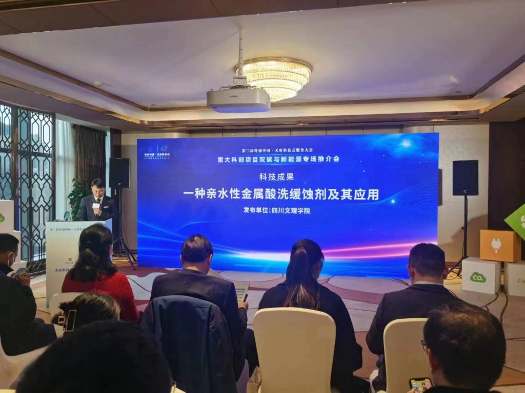 2月15日至16日,第二届“科创中国·天府科技云服务大会”在成都举行。由beat365官方网站院长赖川教授研究团队自主研发完成的“一种亲水性金属酸洗缓蚀剂及其应用”成果入选此次大会重大科创项目双碳与新能源专场并进行现场推介。