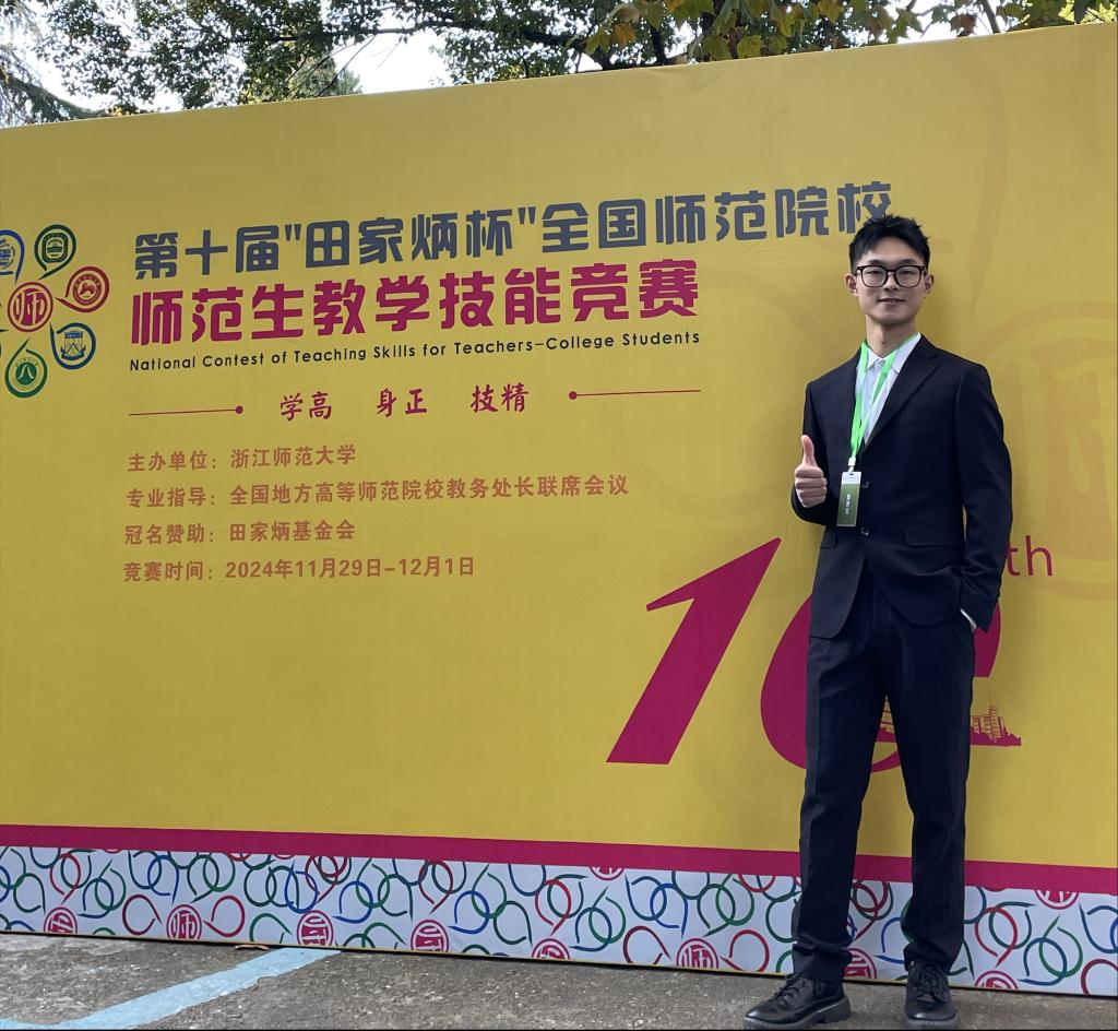 11月29日-12月1日,第十届“田家炳杯”全国师范院校师范生教学技能竞赛决赛在浙江师范大学圆满落幕。本届大赛共有来自全国250所师范院校的1831名选手参加初赛,509名选手进入现场决赛。经过激烈角逐,学院2022级向民杨同学荣获化学组二等奖,2022级曾麟雅同学获科学组优胜奖。