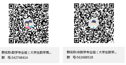 非数学专业组:用QQ扫描非数学专业组二维码加群(群号:562688528),在群内的腾讯文档中在线填写报名表。