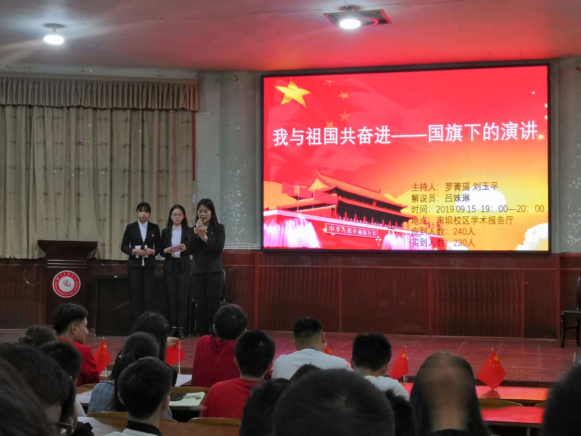 寒秋来临,气温骤降,为迎接中华人民共和国成立70周年和回顾在新中国成立以后中国发生的变化,beat365官方网站于2018年9月16日晚上7:00在学术报告厅举办了“我与祖国共奋进——国旗下的演讲”特别主题团日活动, 2018级200余名团员青年参加活动。