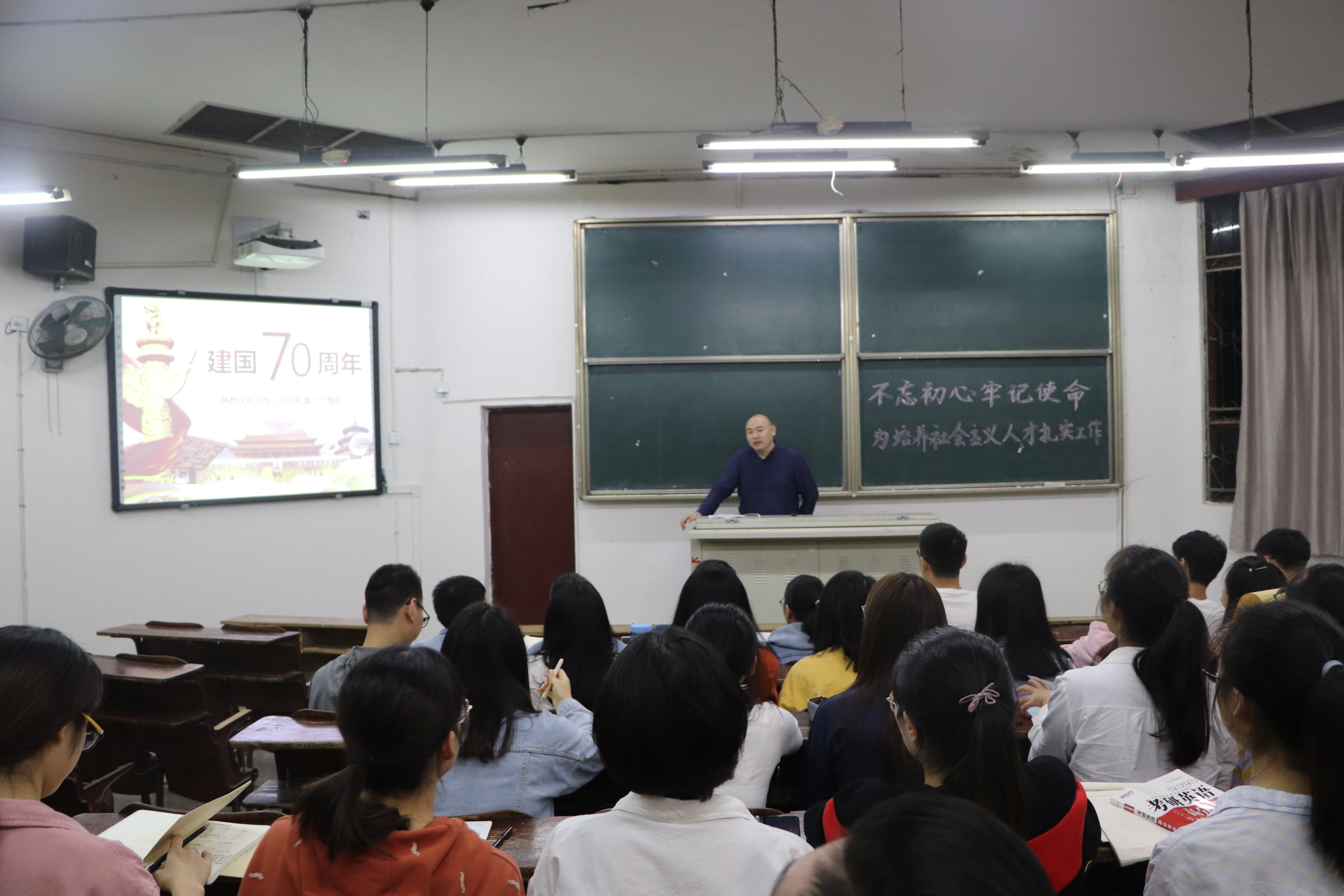 为深入学习贯彻党的十九大精神和习近平新时代中国特色社会主义思想,提升党员干部党性修养,加强学院的思想政治建设,2019年9月26日晚上7点整,beat365官方网站于南坝校区一教楼100教室进行了以“不忘初心,牢记使命——为培养社会主义人才扎实工作”为主题的党课培训,本次党课由beat365官方网站党总支副书记屈川老师主持召开,学工办副主任兼团总支副书记付琼瑶老师,辅导员张魏霞老师以及29名党员参加了此次培训。