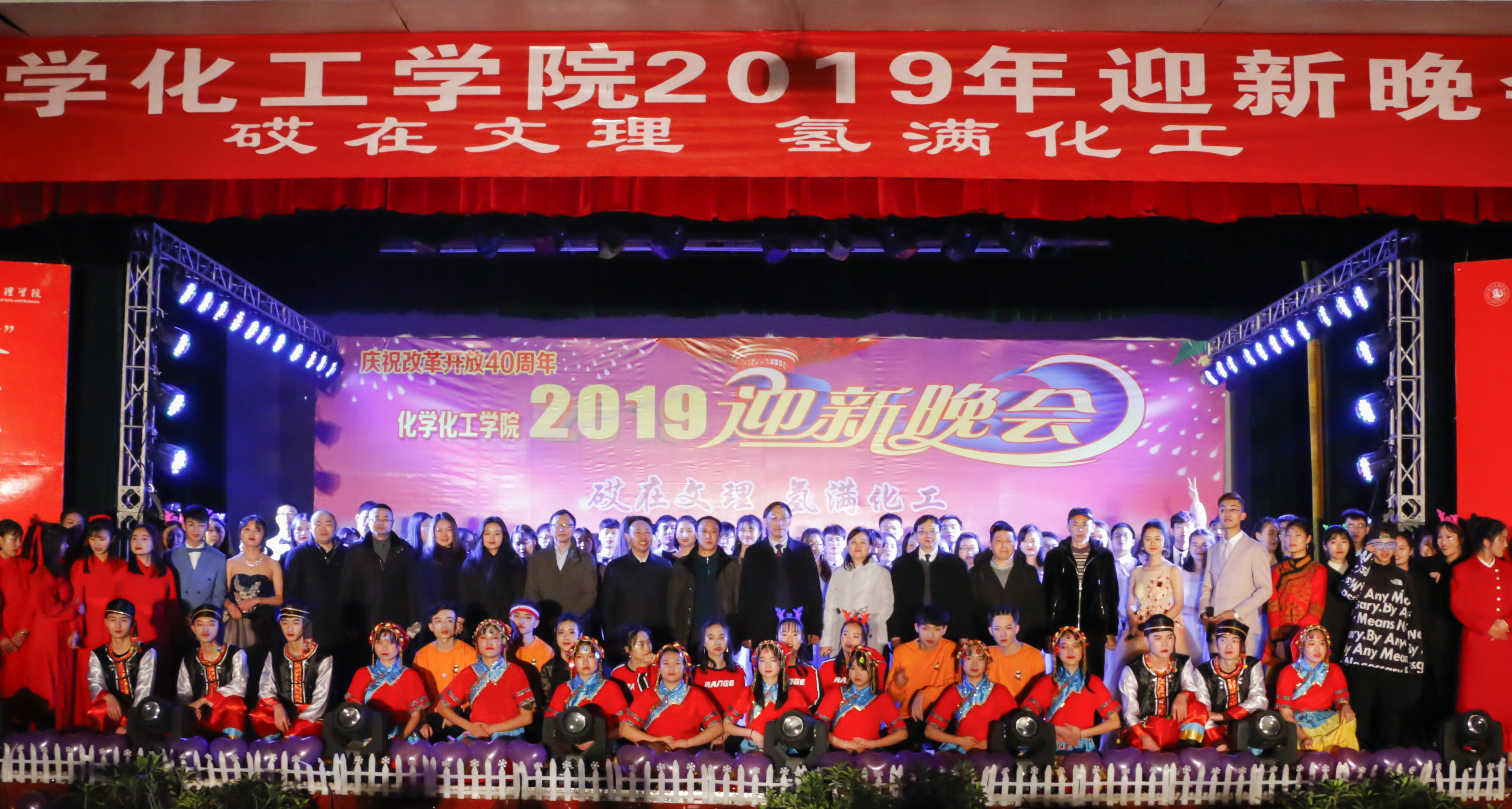 讴歌四十年,花开新时代,改革路上再出发,追梦途中又启程。12月23日19:00,庆祝改革开放40周年暨beat365官方网站“砹在文理,氢满化工”迎新晚会在beat365官方网站南坝校区活动中心举办。学校党委书记王成端教授、党委副书记侯忠明教授和学校职能部门领导、嘉宾以及化工学院全体老师、同学们近400人观看了晚会。