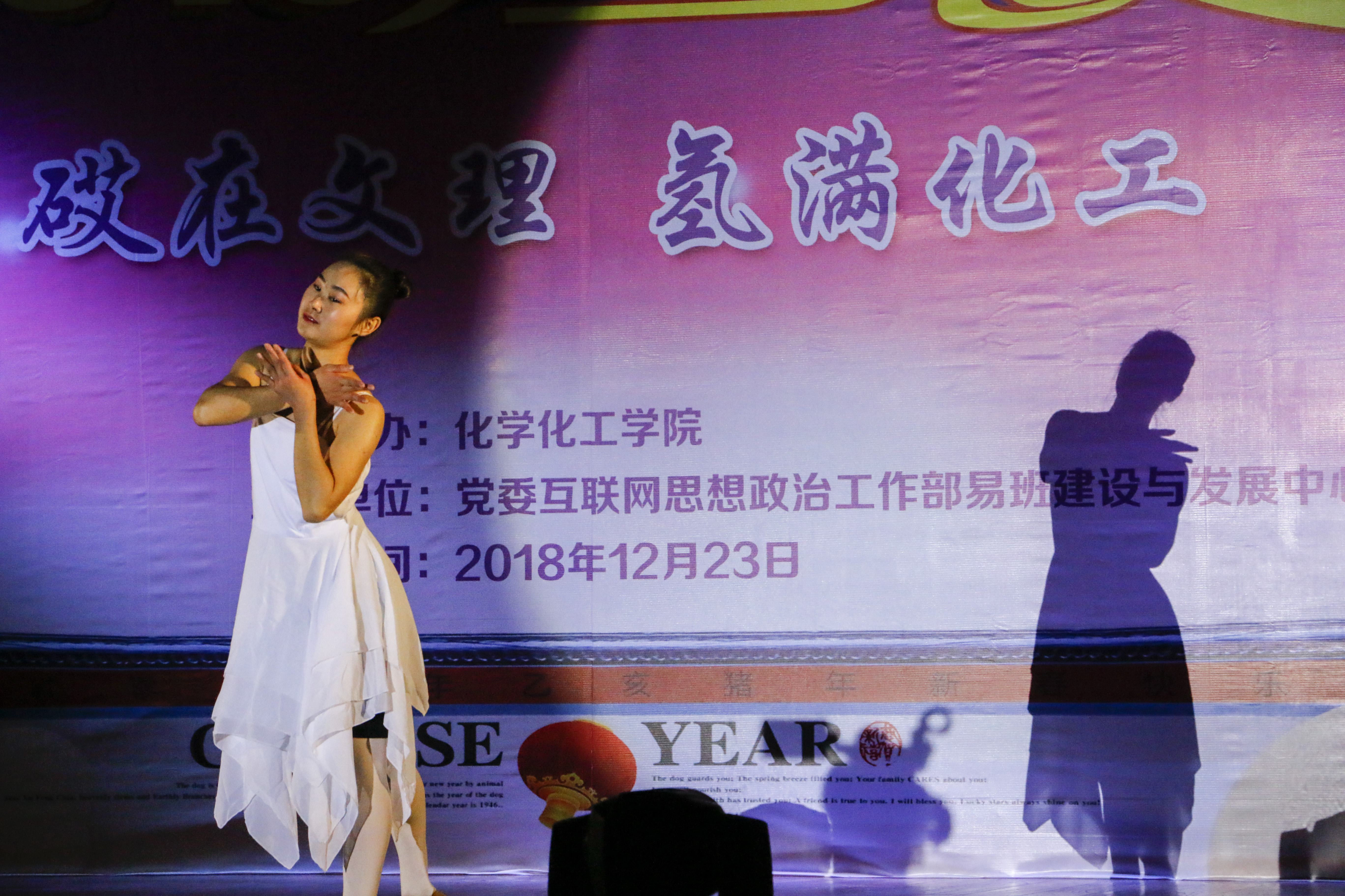 晚会现场热闹喜庆,座无虚席,璀璨的灯光、华丽的舞台、动听的音乐,充满温馨与激情。经过同学们前期的准备,活动中心两侧陈列着展示各班同学风采的展板,展板内容丰富,形式多样,有庆祝改革开放40周年的,有记录学校发展历程的,还有展示化学化工主题特色等等,充分展现了化工学院的风采与个性。