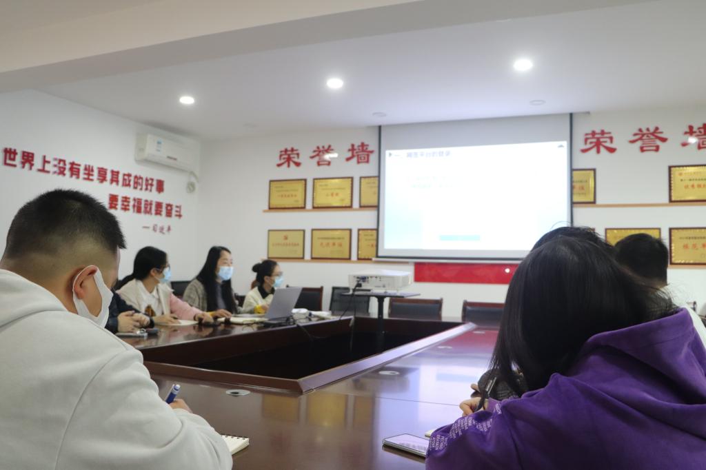 本次培训会议主要分为两部分内容-学生操作指南和学院审核指南。首先张魏霞老师向同学们详细介绍了学生操作网签平台的登录、选择毕业去向登记与网签、不同就业材料的上传提交的重要步骤。并细致入微地告知同学们填写材料时相关的注意事项和规范使用鲜章等一系列问题。