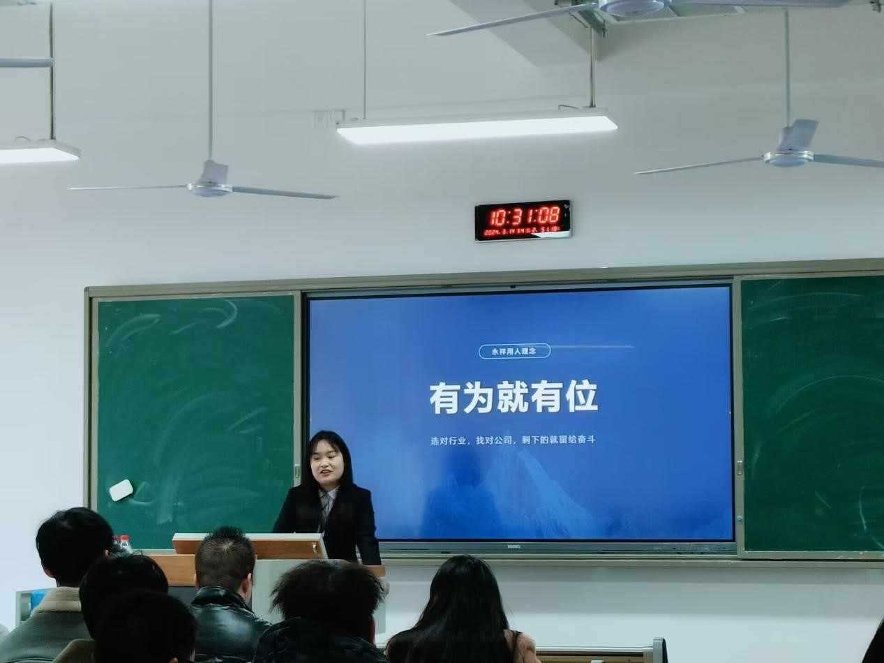 招聘会伊始,公司负责人甘青通过视频来向毕业生们展示了化工行业的就业前景以及发展情况,在讲解中耐心为同学们解答专业性的问题。随后,公司负责人结合PPT向同学们展示公司概况、职业发展方向、岗位需求、公司福利、工资待遇等同学们最为关心的信息,其中还设有有奖问答环节,使得此次招聘会气氛活跃。会上,毕业生们认真聆听负责人的讲解,积极咨询相关问题,宣讲负责人也耐心地为同学们解答。