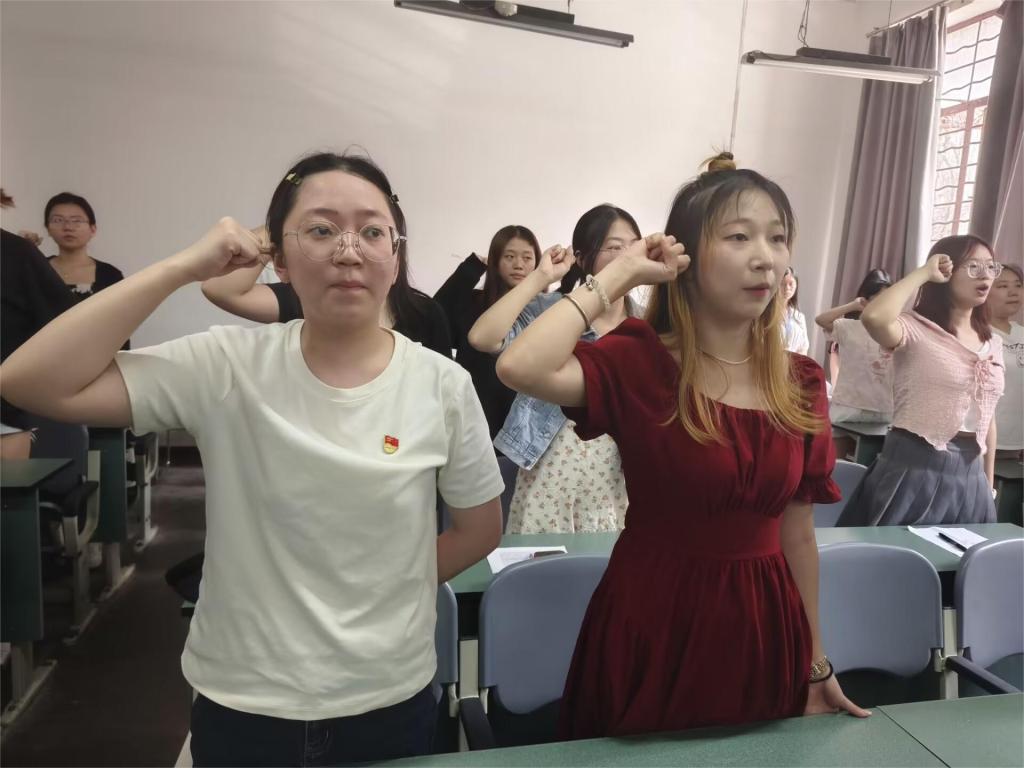 大会第三项,全体起立宣读入党宣誓。会议末尾,崔宝玉老师就大会作了总结发言,要求每位同学要不断加强对党的理论知识的学习,用思想武装头脑;要落实知行合一,把所学所思所悟,去践行社会主义核心价值观。