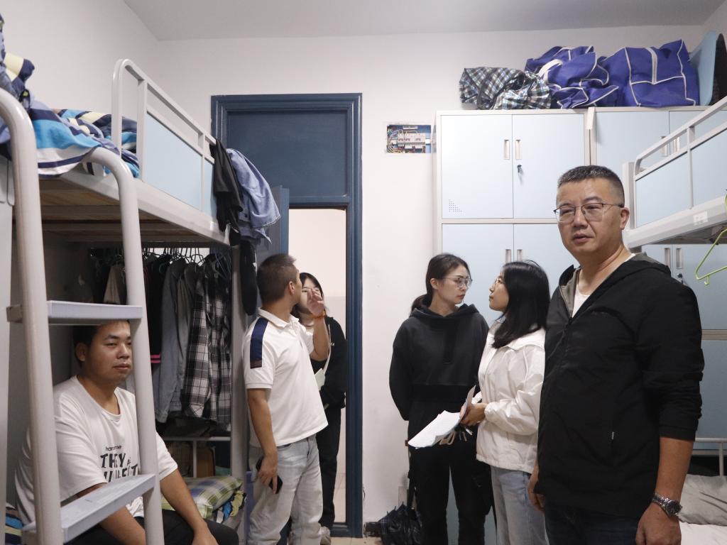 在走访过程中,老师们仔细查看了各学生寝室的卫生情况、物件整理以及用电的安全情况,对整洁干净的寝室给予了表扬,对存在问题的寝室提出了整改要求。潘维副书记针对寝室情况提出几点要求:一是要寝室地面和床铺要保持整洁,营造出良好的生活环境;二要学生要按时作息,杜绝没课期间卧床不起;三要注意用电安全,严禁使用违规电器;四要寝室内保持通风良好,营造一个健康舒适的寝室环境。