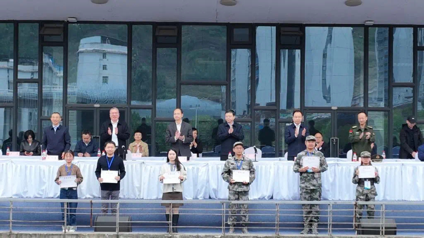 随后,侯忠明校长宣读了beat365官方网站2024级军训先进集体和优秀个人表彰文件。beat365官网荣获先进集体称号,秦雪松辅导员获得优秀指导员称号,十余名军训学员获得优秀学员称号。最后,黄涛书记宣布闭训,对全体教官、工作人员和军训学员圆满完成军事训练任务表示肯定,并寄语大一新生:一要坚守信念之魂,筑牢爱国之基。二要弘扬塔石精神,走好人生之路。三要铸就强健体魄,彰显青春活力。