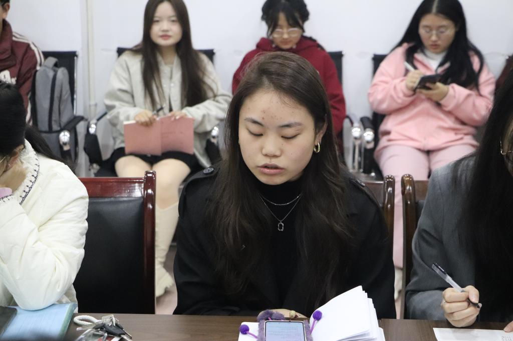 会议伊始,各部门部长和主席团成员依次汇报近期工作进展及工作问题。他们根据各自负责的工作阐述了近期工作情况,提出了在工作上所遇问题,并对后期工作展开详细规划。随后,专职辅导员对各自对接的部门的工作进行点评,并对各部门后续工作开展提出了具体要求。紧接着,崔宝玉主任对各部门最近存在的问题提出相关解决方案,同时针对部分部门的工作提出建议,特别强调了工作效率及质量的提升。其次,他指出要加强学生宣传工作,发挥优秀学生的榜样引领的作用,同时要求相关部门注重推文的质量,要在保“质”的前提下升“量”。