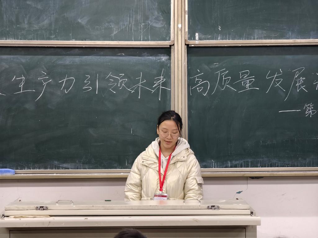 宣讲伊始,主讲人郑晓婷带领大家观看相关影片,并围绕“何为新质生产力”、“新质生产力对我们的具体影响”以及“在新质生产力影响之下青年应当如何作为”这三个问题展开深入探讨,以此剖析影片。随后,她从新质生产力的时代背景出发,指出在我国全面建设社会主义现代化国家的时代背景下,新质生产力已呈现出新的内涵与特征。积极发展新质生产力,已成为我国在新发展阶段构建国家竞争新优势的战略抉择。