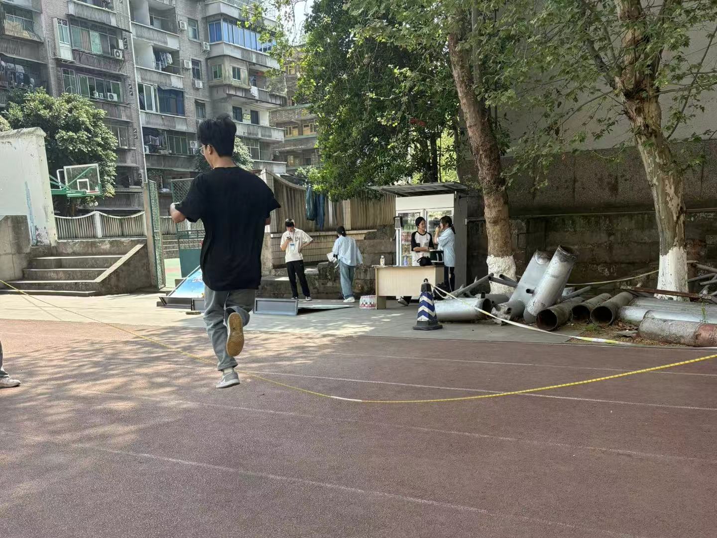 运动会伊始,跳大绳比赛率先拉开帷幕。各参赛队伍随着裁判一声令下,迅速进入比赛状态。在不断挥动的绳间跳跃,他们相互配合,不断刷新着跳大绳的记录,展现出强大的团队凝聚力。场边观众也热情高涨,加油声、呐喊声此起彼伏,整个篮球场充满了青春的活力。紧接着,车轮滚滚项目准时开场。同学们五人为一组,站在巨大的“车轮”道具内,双手紧握边缘,严阵以待。发令声起,各小组迅速调整步伐,齐声呼喊口号“一二一”,推动“车轮”快速前进。赛程中偶有颠簸,队伍步伐虽短暂打乱,但大家迅速稳住重心,重整旗鼓加速追赶。队员们以默契的协作、坚定的眼神和不断向前的冲劲,生动展现了团结奋进的集体力量,用实际行动诠释了永不言弃的体育精神。