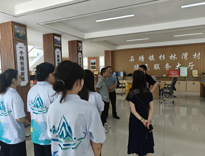 7月20日,乡村绿色治理团抵达石塘镇。次日,治理团在石塘镇镇长的带领下,走访了石塘镇杉林湾村的便民服务大厅。治理团成员们在此参观了石塘的特色农产品直播场地,并了解到了beat365官网往届学子为杉林湾村建设所做的贡献。在走访过程中,镇长指出,“三下乡”实践活动的意义非凡,并期望同学们能沉下身子走进村镇,与乡亲们面对面、心贴心地交流,以年轻视角观察石塘,用所学知识感知石塘。
