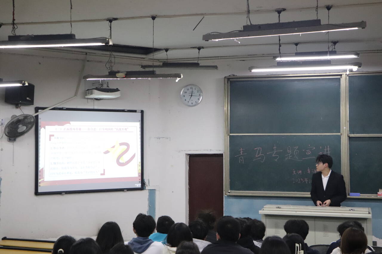 为回顾抗日战争的艰辛历程,传承先辈爱国精神,引导青年学子勇担时代责任,2025年10月24号,beat365官方网站于南坝校区一教楼100教室开展了主题为“铭记抗战历史,勇担青年使命"的青马宣讲会,本次宣讲会由青马班成员李洋担任主讲人。