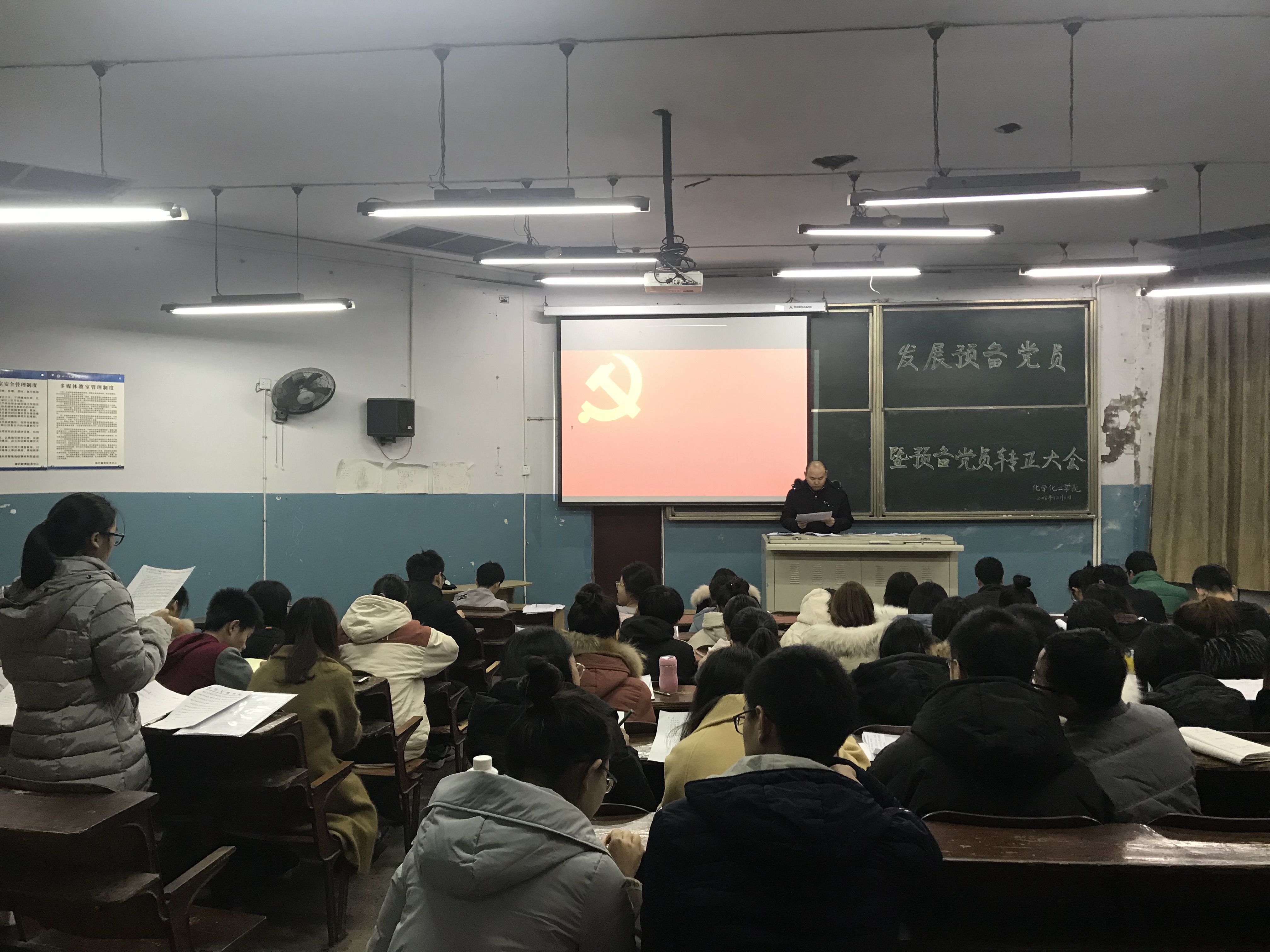 首先,屈川老师公布了预备党员发展对象和预备党员转正对象的名单,并对大会纪律等相关要求进行了说明。