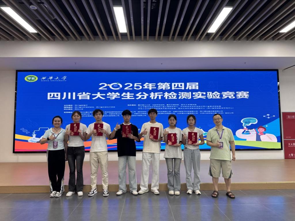 7月12日,由四川省教育厅主办,四川省分析测试学会、四川省化学化工学会指导,西华大学承办的2025年第四届四川省大学生分析检测实验竞赛在成都圆满收官。本届竞赛共吸引了川渝地区24所高校的553支队伍,超1200名师生参加。经过激烈角逐,70支队伍晋级复赛。beat365官网学子凭借扎实的专业功底、精湛的实验技能和出色的创新能力,在竞赛中表现优异,共荣获8项奖项,其中在主赛道勇夺一等奖1项、二等奖2项、三等奖3项,在创新赛道斩获二等奖和三等奖各1项。
