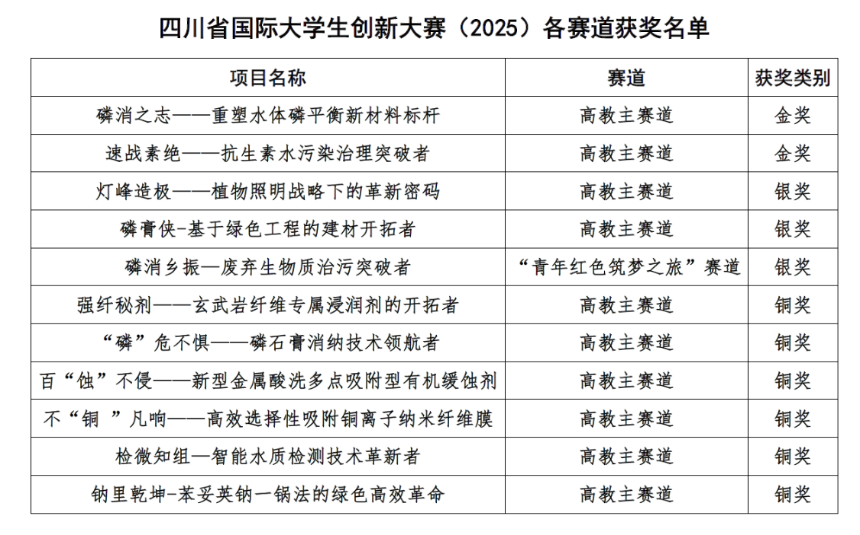 化工学子在四川省国际大学生创新大赛(2025)斩获佳绩