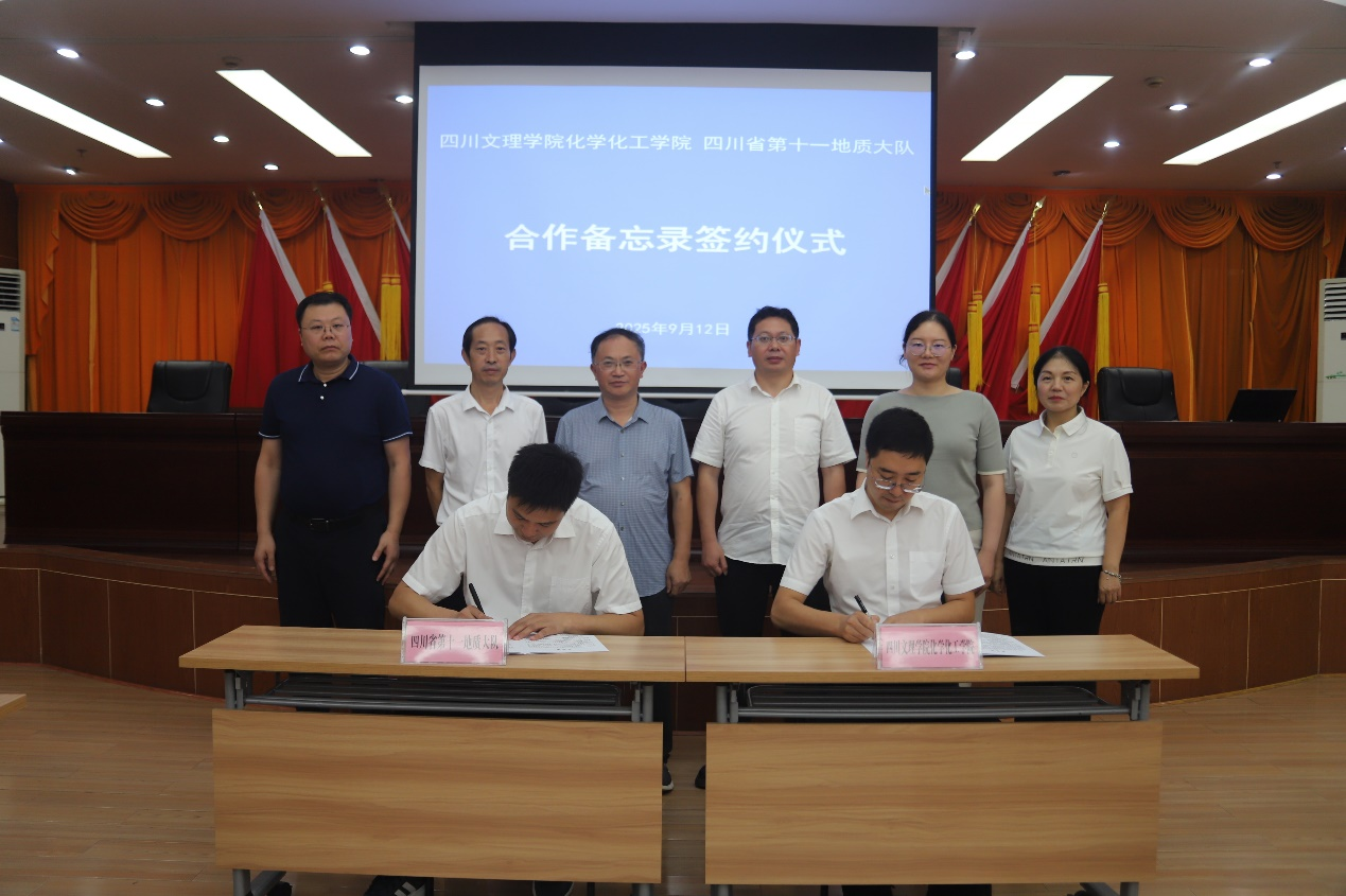 会上,双方还围绕科研成果转化、产业技术应用和人才资源共享等多个议题展开交流讨论,最终达成高度合作共识,并签订合作备忘录。会议尾声,学院为四川省第十一地质大队举行了“产学研合作基地”“实践教育基地”授牌仪式。