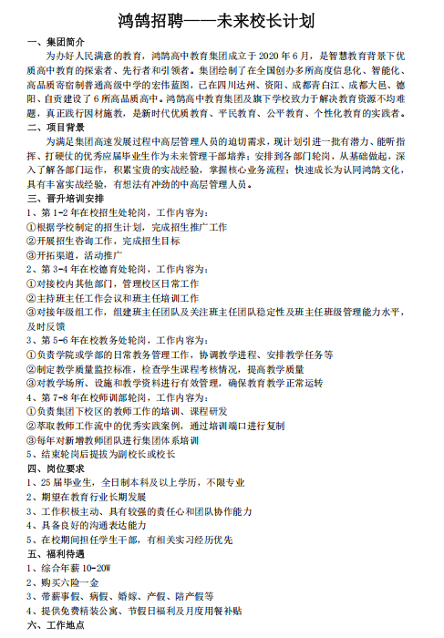 转发“鸿鹄招聘--未来校长计划”